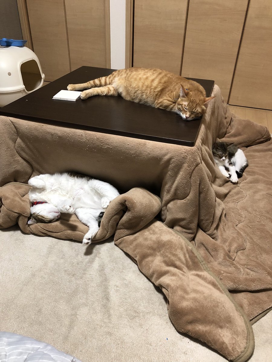 Mika A Twitter これが我が家のコタツが片付けられない理由だ 猫 子猫 ツナちゃん ウニくん コハダちゃん 片付けられない そろそろこたつ片付けたい みんなでねんね 可愛いから仕方ない