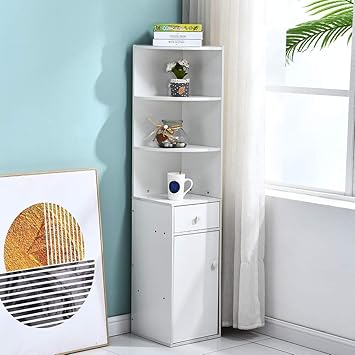 Amazon Co Jp リビングルーム木製スリム本棚キャビネット引き出しと3つの棚コーナーユニット収納ディスプレイ本棚背の高いベッドルーム食器棚 サイドボード小さな寮のアパート実用的 スポーツ アウトドア