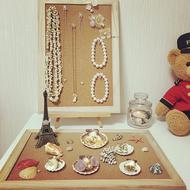 棚 イヤリング収納 アクセサリー収納 コルクボード 貝殻 などのインテリア実例 2016 02 19 23 47 51 Roomclip ルームクリップ