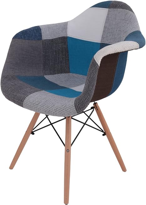 Amazon Co Jp アイリスプラザ 椅子 ダイニングチェア イームズチェア リプロダクト 天然木脚 パッチワークブルー Dn1002d ホーム キッチン