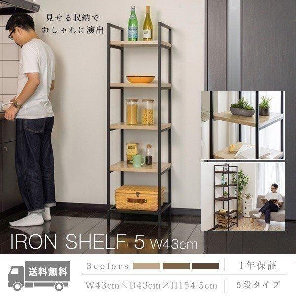 ラック 収納棚 アイアンシェルフ シェルフ おしゃれ ディスプレイラック オープンラック 幅43cm 5段 収納 棚 木目 五段 フリーラック 本棚 送料無料 Ys A15217 L Design 通販 Yahoo ショッピング