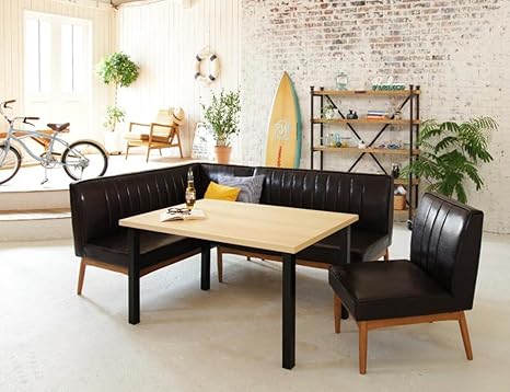 Amazon リゾートカフェ風ダイニング4点セット 天然木 Puレザー テーブル1 ソファ2 チェア1 テーブル幅120cm アームソファ 左アーム ダークブラウン ダイニングセット オンライン通販