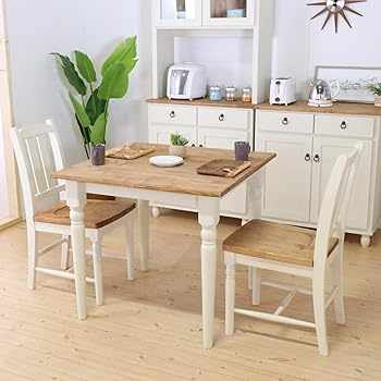 Amazon フレンチカントリー家具 ダイニングセット 白 3点セット 手作り ナチュラル 北欧カントリー風 カントリー調 ダイニングセット オンライン通販