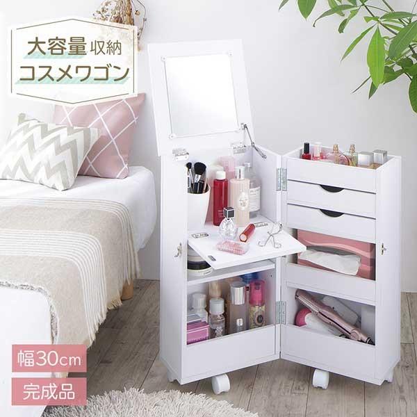 楽天市場 ドレッサー コスメ コスメ収納 化粧品 収納 コスメボックス コスメワゴン メイクボックス 化粧台 メイク台 ワゴン 鏡付き キャスター付き 新生活 ワンルーム 一人暮らし 完成品 直送 送料無料 生活雑貨楽天市場店