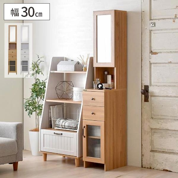 隙間収納 おしゃれ ドレッサー すきま収納 北欧 木製 スリム 収納 ホワイト コンパクト 鏡付き ハイタイプ 幅30cm 隙間 ランドリーチェスト キッチン 24 243 サムライ家具 通販 Yahoo ショッピング