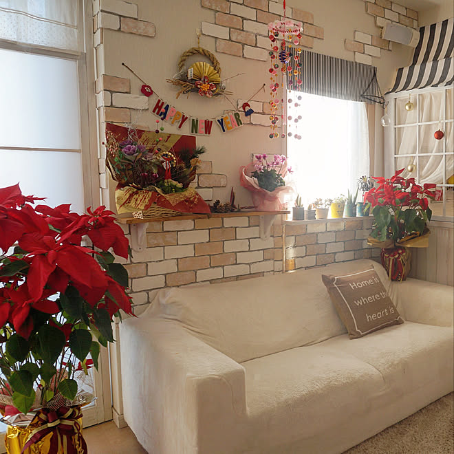部屋全体 ポインセチア ニトリ お正月 しめ縄 などのインテリア実例 2018 12 28 17 11 44 Roomclip ルームクリップ