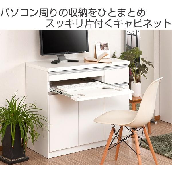Lohaco キャビネット パソコンデスク 収納棚 スタイシッリュ 約幅90cm ホワイト Pcデスク Pc収納 パソコン収納 ラック 棚 リビング収納 シンプル 木製 プリンター収納 ノートパソコン ライディングデスク 収納 パソコンデスク リビングート ロハコ店
