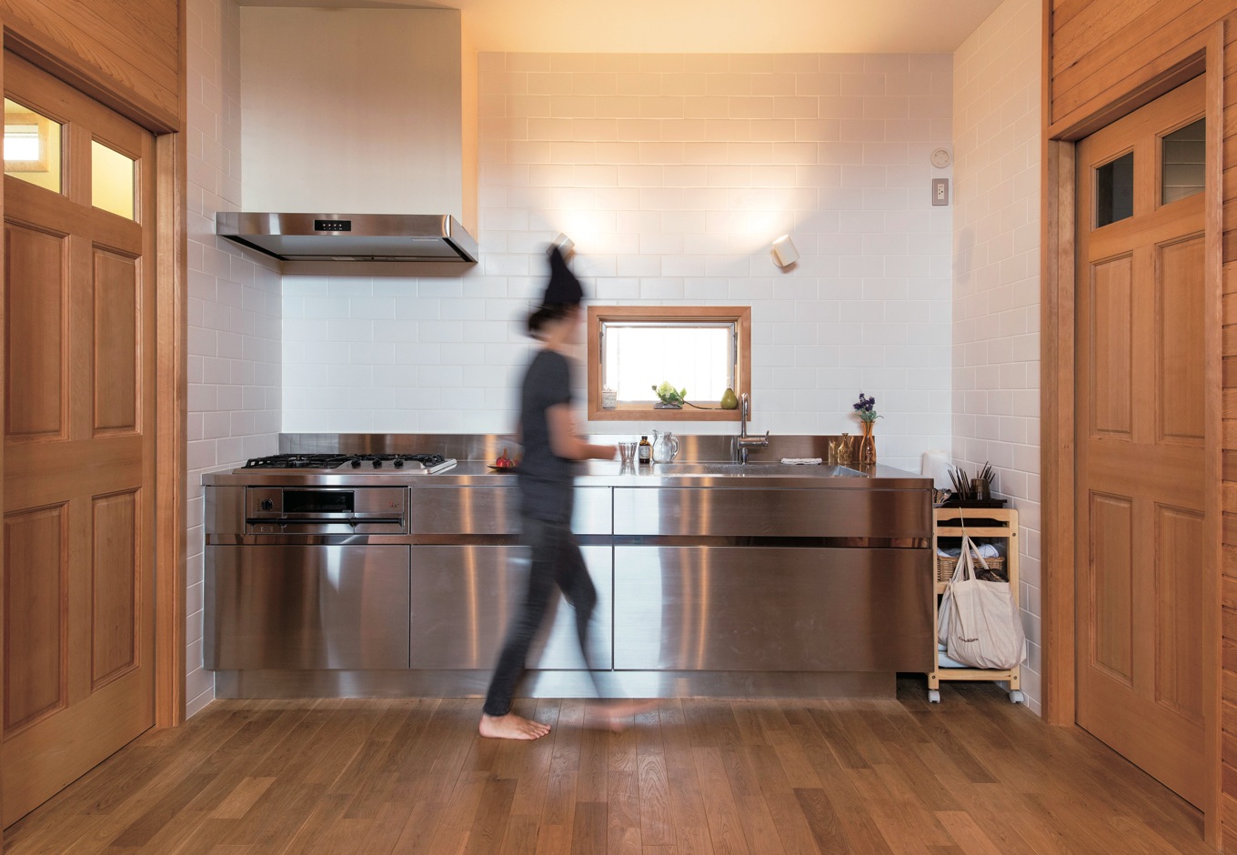 冷蔵庫をキッチン横のパントリーに隠したステンレスキッチン 味噌や梅干し リキュールなども手づくりする奥さまのこだわりだ イエタテ
