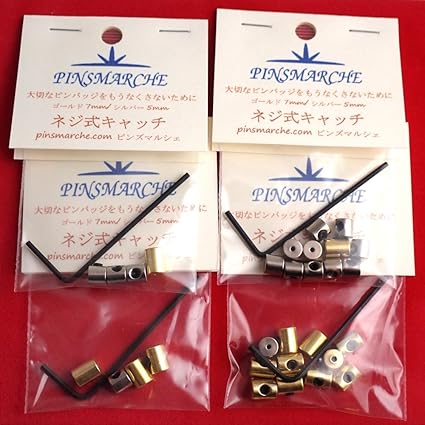 Amazon ピンバッジの留め具しっかり留まるネジ式キャッチ10個セット銀色 1個金色おまけ 使用方法説明書き付 ゴールド7ミリ シルバー5ミリ バッジ ホビー
