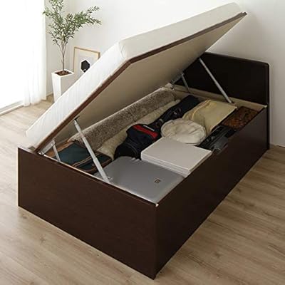 Amazon 組立設置サービス 日本製 フラットヘッド 収納 ベッド 横開き 深型 ダークブラウン シングル ショート丈 ポケットコイルマットレス付き 木製 大容量 跳ね上げ式 ガス圧 フレーム マットレスセット オンライン通販