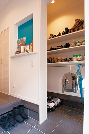 ベビーカーを玄関のシューズクロークに収納すると便利 家づくりと暮らしかた マイホームを快適に メンテナンスと工夫 一条工務店i Smart 家庭菜園やバーベキュー リゾート空間など自宅や庭を活用した子育て世代が暮らす 居心地の良い空間づくりをしながら日々