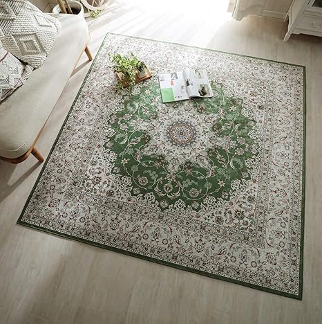 Amazon Co Jp グラムスタイル ペルシャ 絨毯風 洗える ラグ カーペット 2畳 190x190cm グリーン ホーム キッチン