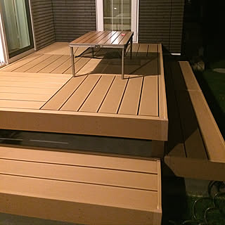 じゃーん 何が変わったでしょう そう ウッドデッキつきましたー 思ったより地面から高い 階段ついてるけど 一段が高い 調子に乗って階段使わず降りると 足がキーンてなるやつだと思います ウ 住宅の