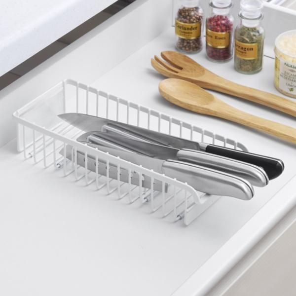Lohaco 包丁ケース 引き出し用 ファビエ キッチン収納 包丁差し 包丁収納 包丁入れ 引き出し用 包丁ケース 包丁スタンド 包丁立て ナイフスタンド 仕切り スチール製 ホワイト 白 キッチン収納 リビングート ロハコ店