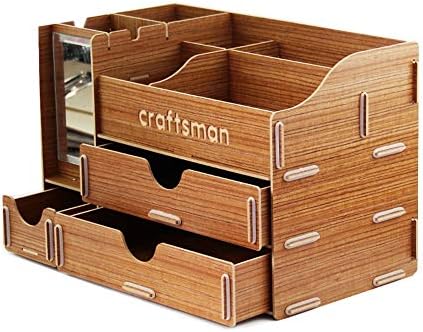 デスクオーガナイザー クリエイティブデスクトップウッド付きミラー引き出し化粧品ジュエリー雑誌雑貨収納仕上げボックス多目的デスクトップ収納オーガナイザー 机上用品 整理整頓 オフィス 寝室 リビング収納 Color Natural Midlothiantsi Org Uk