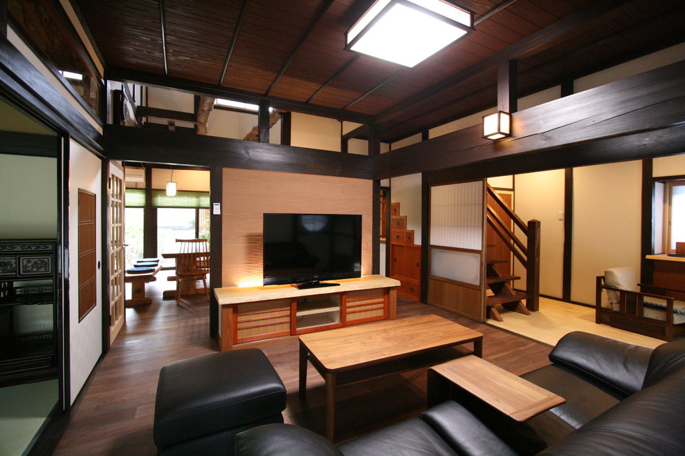 母屋と蔵を改装し三世代古民家へ Asian Living Room Other By 有限会社 道建設