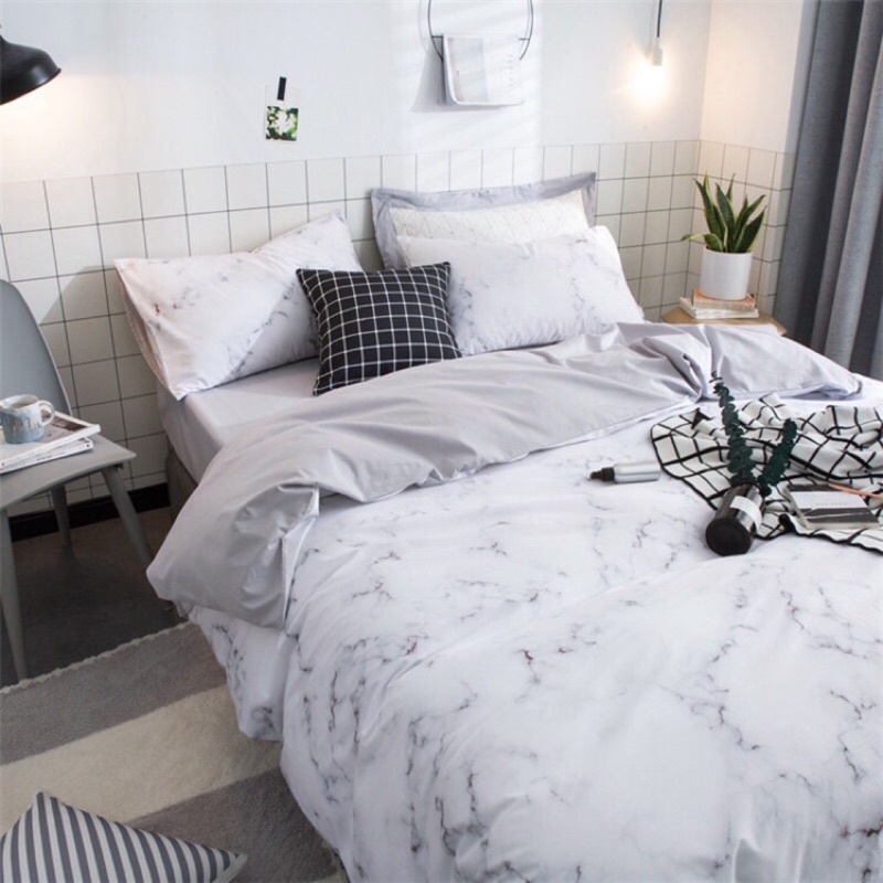 Sevenfriday Ins北歐簡約大理石純棉水晶絨床單組床組套件床包組四件套棉絨被套床單床笠床上用品三件套 露天拍賣