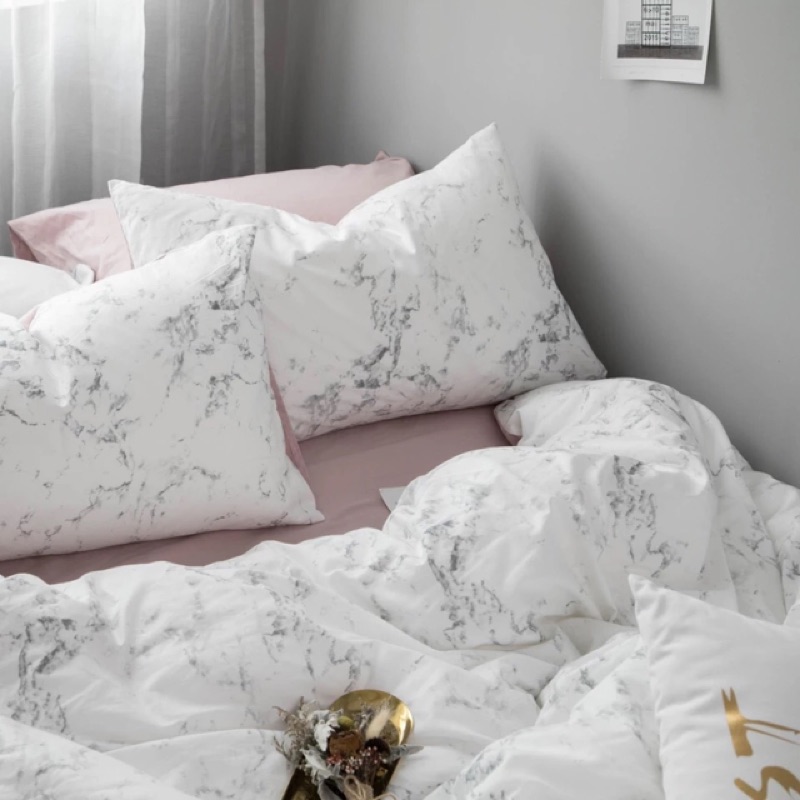 現貨 2色 北歐大理石紋純棉床包組雲紋床單被套枕套時尚女神網美粉色灰色ikea床墊尺寸單人床包雙人床包