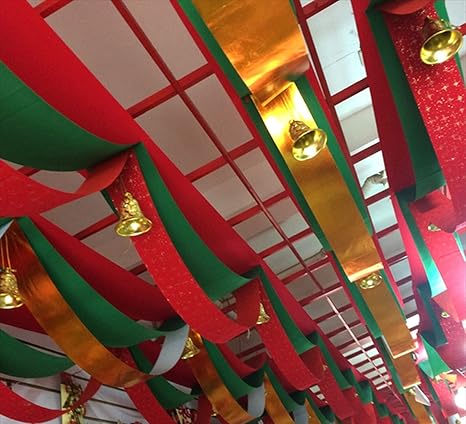Amazon 室内装飾 リボンバナー イベント パーティー 天井 飾り付け 1m 金 緑 赤 おもちゃ おもちゃ
