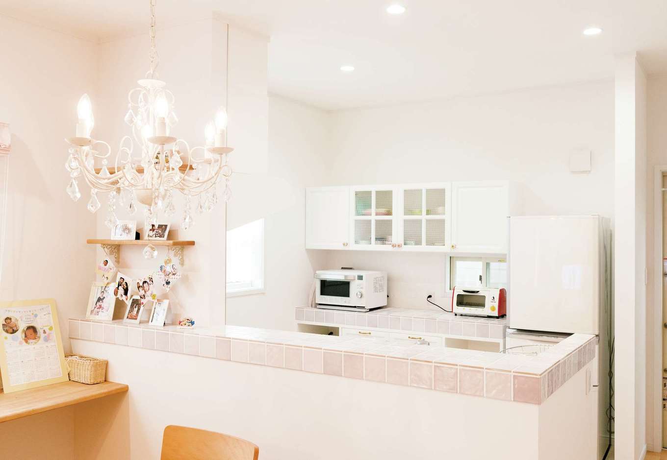 対面式キッチンにはピンク色のタイルを使用 インテリアの基調になった イエタテ