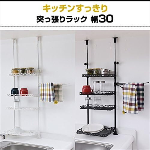 Amazon 山善 突っ張りキッチンラック 幅30 奥行21 5 高さ72 115cm 4段 タオルハンガー こぼれ止め 下段はね上げ式 棚板高さ調節可能 組立品 ホワイト Tkro 304 Wh キッチンラック オンライン通販