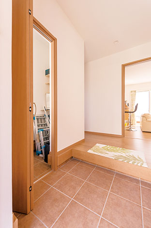 広い玄関ホールは たくさんの荷物とともに帰宅しても 家の中に上がりやすく便利 イエタテ
