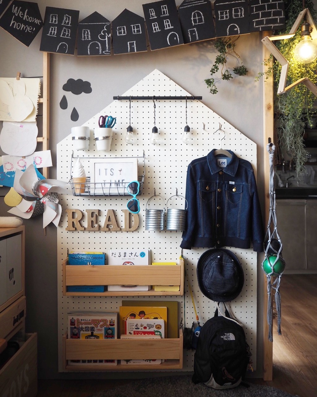 壁美人 有孔ボードでキッズルームに壁面収納 キッズルーム 収納 アイデア 模様替え