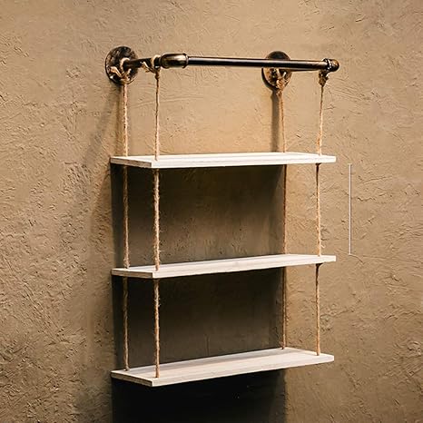 Amazon 工業用ビンテージ水道管壁棚 吊り棚壁掛けジュートロープ バーの寝室の創造的な壁の装飾のためのアンティーク木製の壁棚 オープンシェルフ ラック オンライン通販