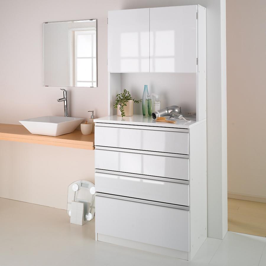水回りでも安心の光沢洗面所チェスト 扉付きハイタイプ 幅75cm 通販 ディノス