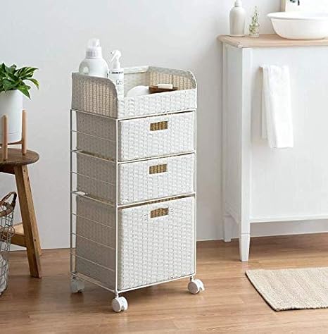 Amazon ランドリーチェスト ランドリー収納 ランドリーワゴン ラタン調 おしゃれ 北欧 キャスター付き スリム 洗面所 収納 サニタリー収納 サニタリーチェスト 収納棚 ランドリーチェスト 3段スリムタイプ ホワイト 家具 オンライン通販