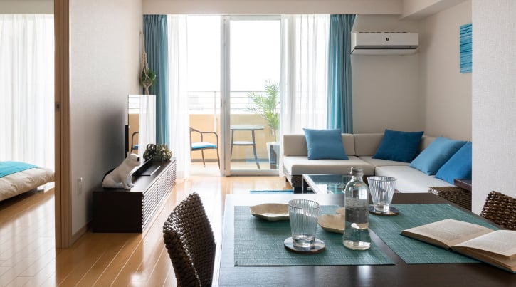 空と海を連想させるブルーインテリアでリラックス感と開放感を