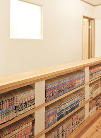 階段背面を利用してご主人の漫画本を収納 イエタテ