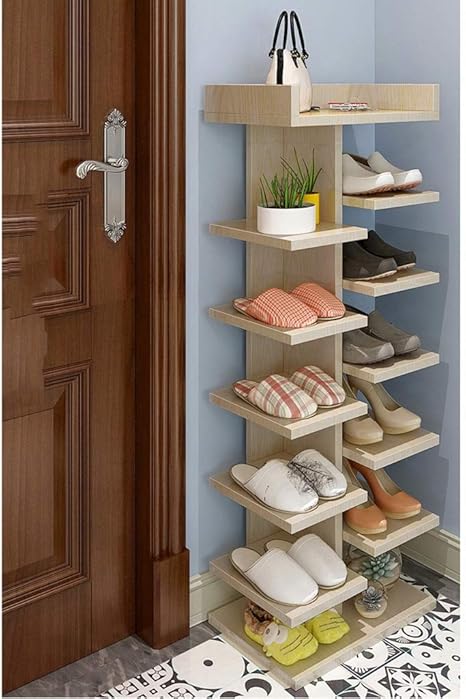 Amazon 多機能多層靴箱収納 省スペース家具棚 ソリッドウッドの靴のベンチ収納ユニット立ち装置ラック靴収納オーガナイザーリビングルームの寝室 色 木の色 サイズ さいず Seven Floors 玄関台 オンライン通販