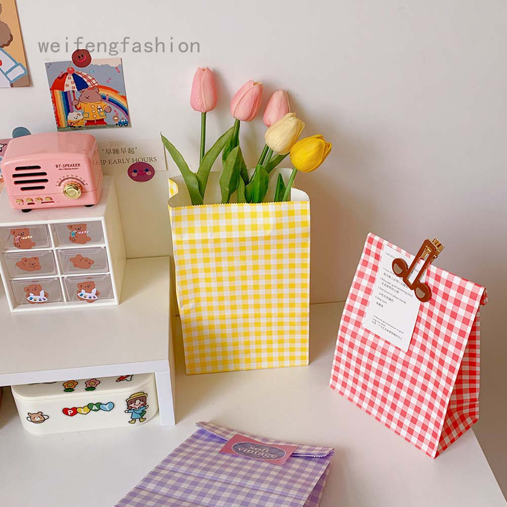 韓式彩色格子牛皮紙袋禮品包裝小禮品紙袋可愛收納整理袋 蝦皮購物