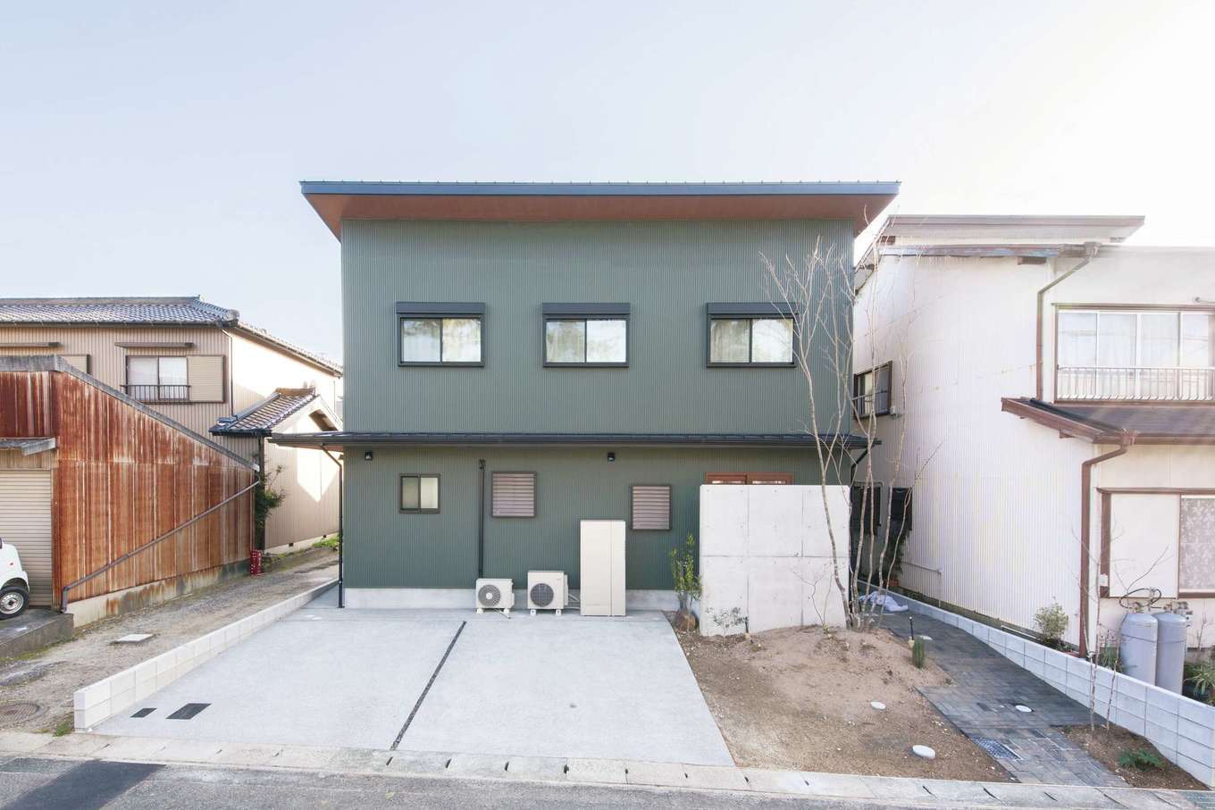 ガルバリウム鋼板の外壁に合わせ 外構は自分たちで手がけた イエタテ