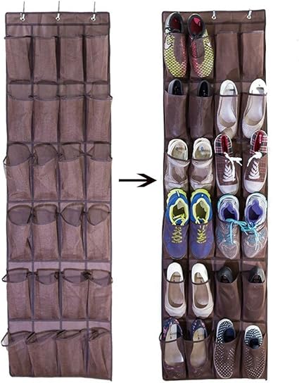 Amazon Homeland 靴収納 ウォールポケット壁掛け式シューラック 狭い スペースで たっぷり 靴や小物の 収納に 24ポケット 6層折りたたみ 吊り下げ 収納ラック フック付き ブラウン Homeland ウォールポケット