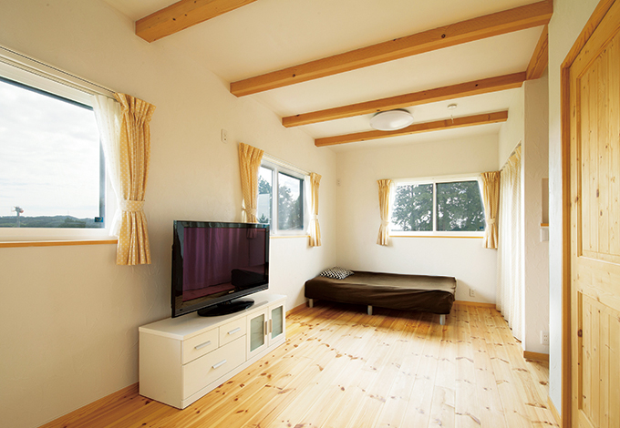 12畳の子ども部屋は家族構成の変化に応じてフレキシブルに間仕切り可能 カーテンを開ければ 緑したたる茶畑のパノラマビュー イエタテ