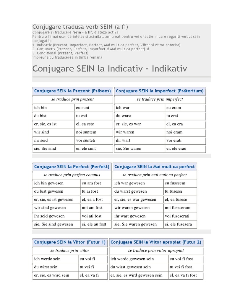 A fi in germana. Verbul sein a fi este folosit in germana aproape la fel ca si in limba romana. Frieren a fi frig 31. Am ati ar fi. Gewinnen a câştiga 37.