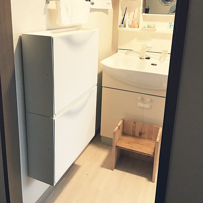 Ikeaのシューズキャビネットを使って 洗面所をスッキリタオル収納 暮らしニスタ
